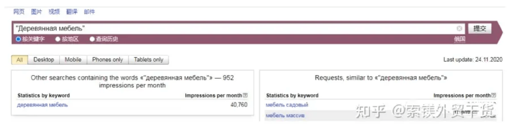 Yandex wordstat網(wǎng)址如下:https://wordstat.Yandex.com/