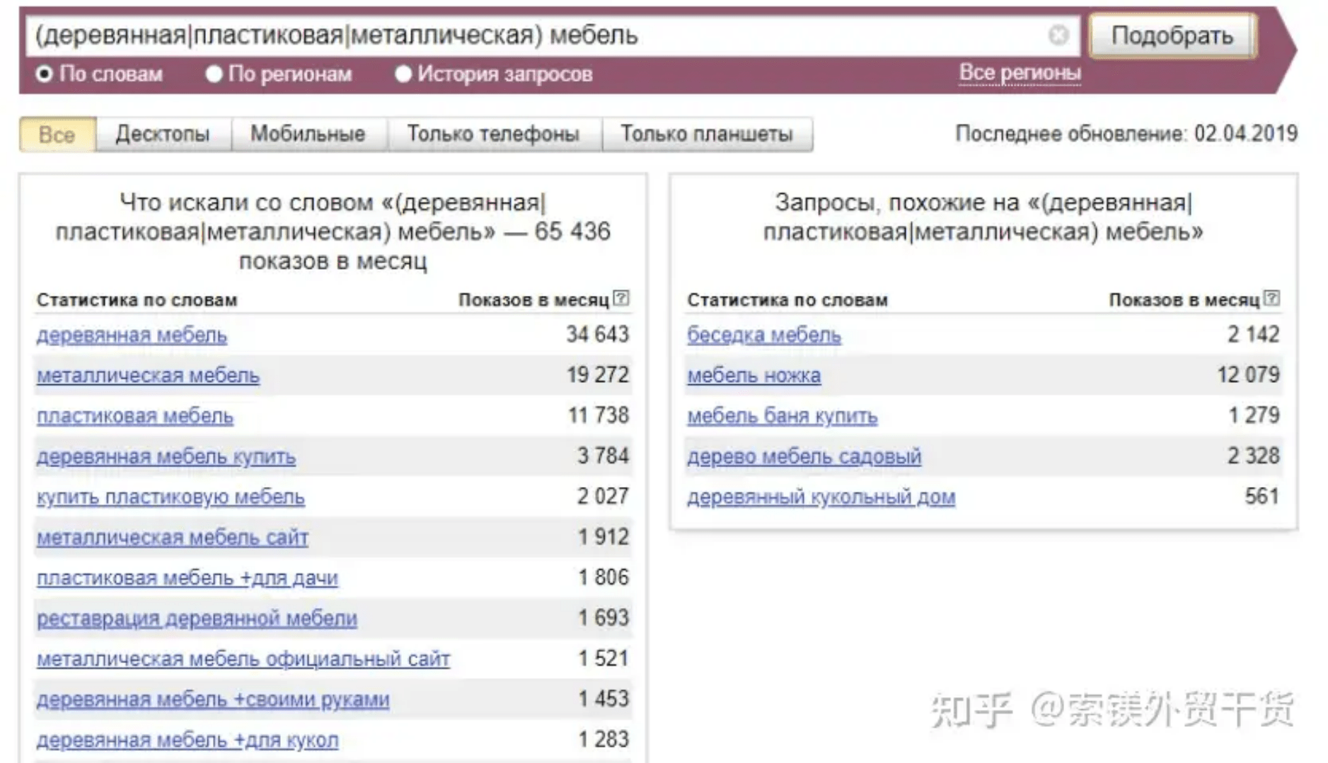 如圖,我們看到查詢“木質(zhì)家具”的總搜索數(shù)只剩下952。